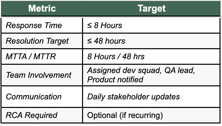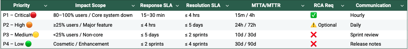 Without clear definitions and SLAs, teams waste valuable time debating what’s critical versus cosmetic, delaying fixes and clouding accountability.